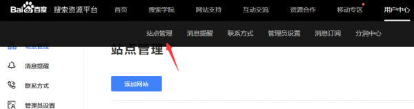 1、添加站點:登錄百度站長平臺后,點擊“我的網站-站點管理”,再點擊“添加網站”就可以添加站點了。看圖1