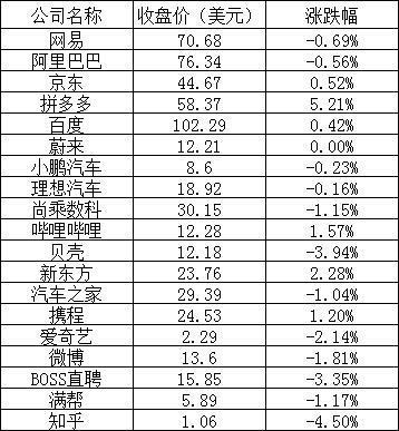其他熱門中概股漲跌不一,其中嗶哩嗶哩上漲 1.57%,攜程上漲 1.20%,百度上漲 0.42%,知乎下跌 4.50%,BOSS 直聘下跌 3.35%,汽車之家下跌 1.04%。