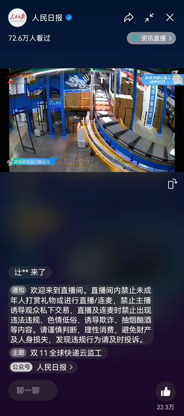 “快遞小哥治好了我的精神內耗。”11月12日零點,伴隨著第14屆天貓雙11收官,一場超11天共268小時的全球快遞“云監工”直播也正式落幕。從10月31日晚八點開播以來,這場“治愈系直播”已被人民日報等全國70多家媒體轉播,僅視頻號和抖音號就吸引了超3000萬人次圍觀。